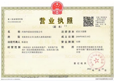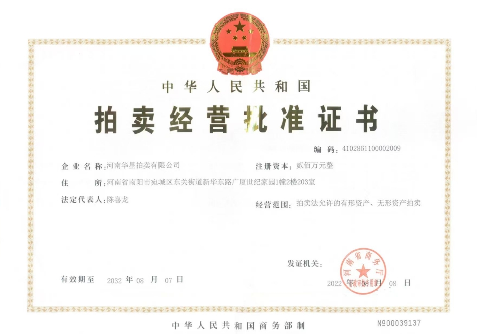 2013年7月取得南陽市人民政府指定、河南省財政廳頒發(fā)河南省公物拍賣資格證書